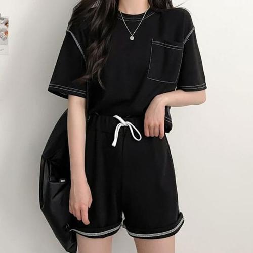 스티치 트레이닝 셋업 반팔 티 반바지 세트 SET [2color 여자 루즈핏 츄리닝 운동복 여름 티셔츠 밴딩]