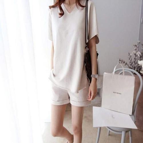 ( )여성 여름 반팔 반바지 트레이닝 상하 세트 베이지 츄리닝 운동복 여자 트레이닝복 캠핑룩