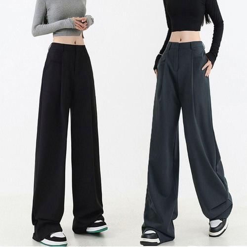 여성 느슨한 봄 여름 2025 새로운 높은 허리 넓은 다리 슬림 캐주얼 바지 한국 패션 트렌드 여성 정장 스트레이트 바지