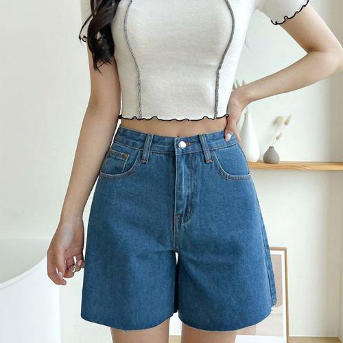 여자 데님 가을 빈티지 슬림핏 일자 핫팬츠 스판 청반바지 하이웨스트 얇은 A라인 반바지 빅사이즈 원픽3