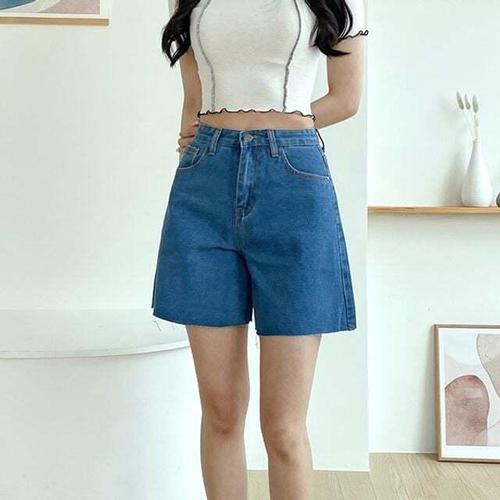 여사친 데님 하이웨스트 청반바지 슬림핏 반바지 A라인 핫팬츠 배핏 빅사이즈 원픽1