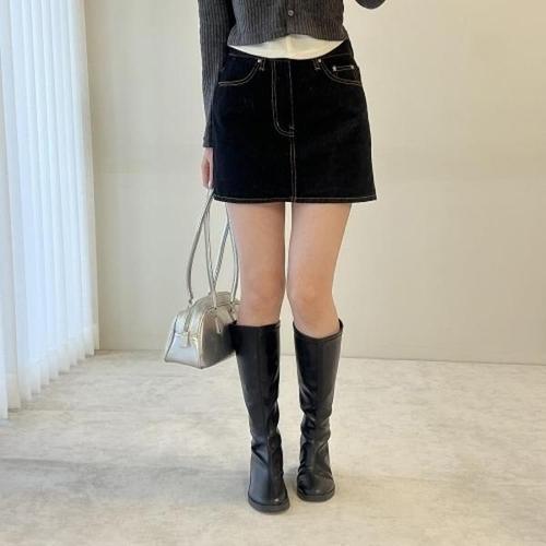[에이치플러스몰]에이라인 생지 미니 청스커트