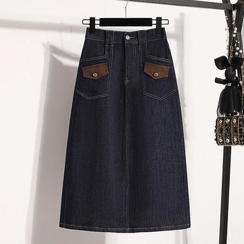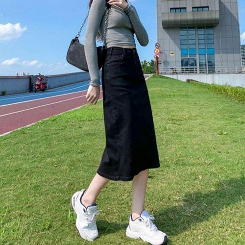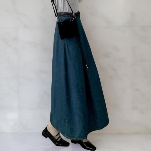 POMTOR 여름 데일리 빈티지 캐주얼 롱 청 치마 데님 스커트