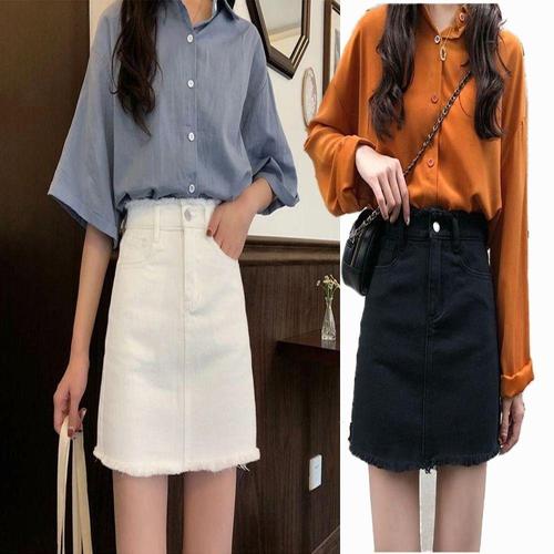 청치마 여자 데님 미니스커트 디테일 화이트 컷팅 WFLQ848