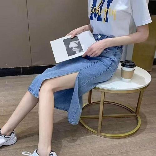 여자 캐주얼룩 세련된 느낌 트임 청치마 데님스커트 WFKOD27