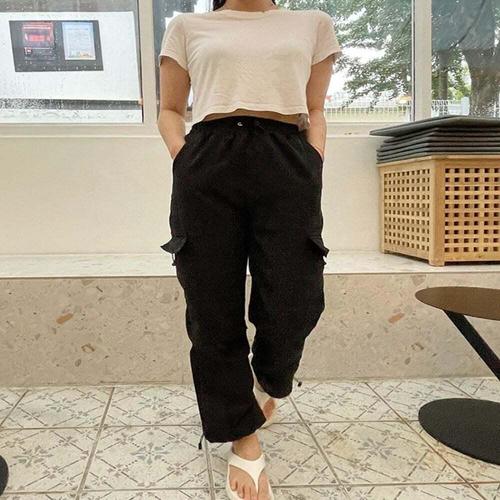 [셀럽하우스]여자 TAEH9923 여름 카고바지 와이드팬츠 바스락 스트링 바지