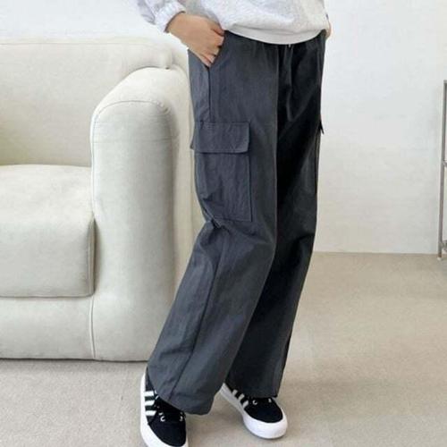 [셀럽하우스]밴딩 WJYO3896 카고바지 포켓 와이드팬츠 바스락 편한 여성