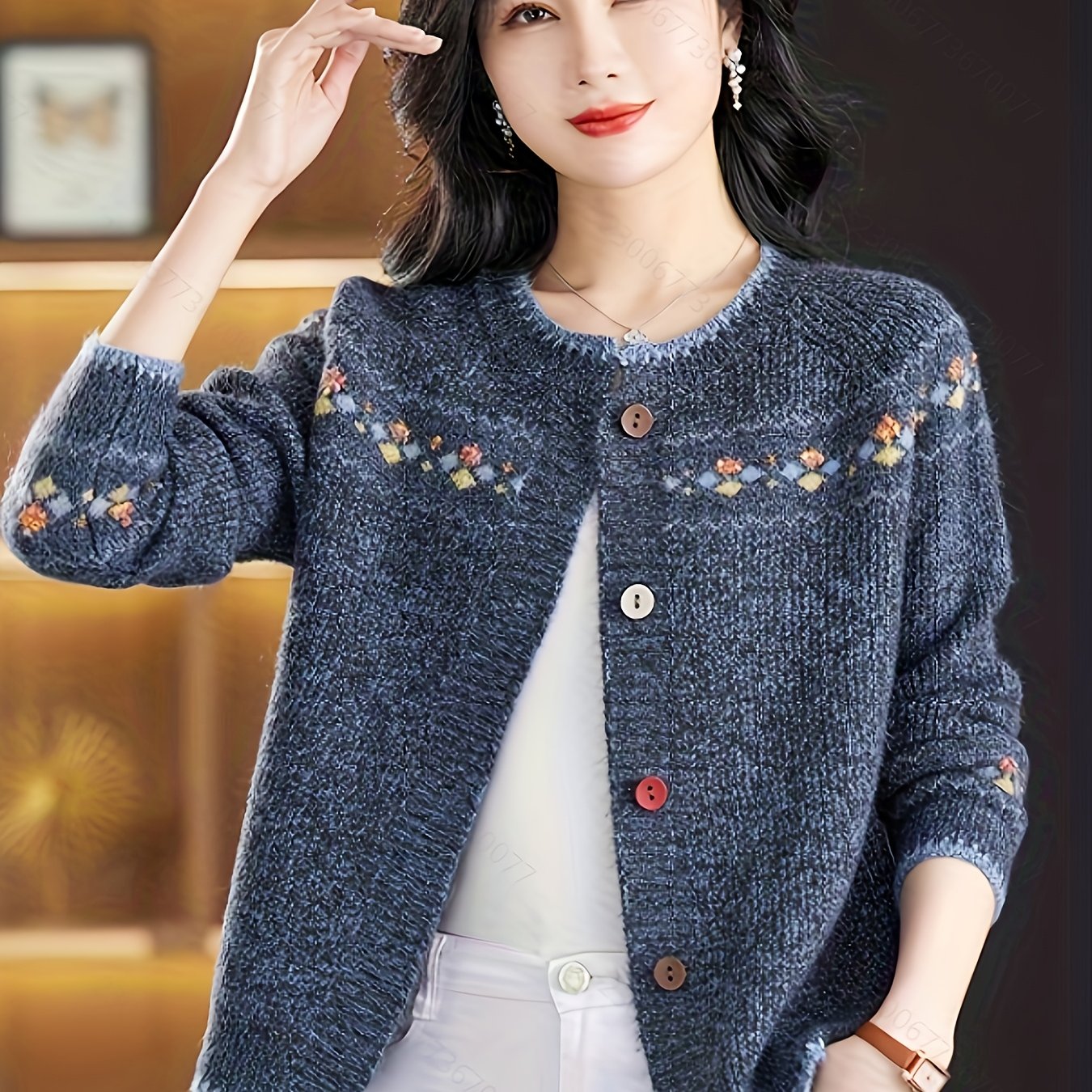 TEMU 가을-겨울 신상 라운드넥 카디건 숄 스웨터, 여성용 루즈핏 스타일리시 아우터웨어