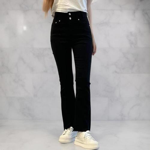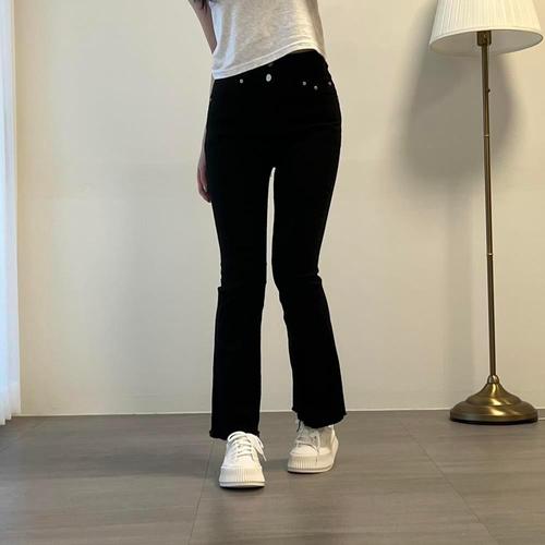 [다잇템]여자 검정데님 나팔 슬림 컷아웃 세미 청바지