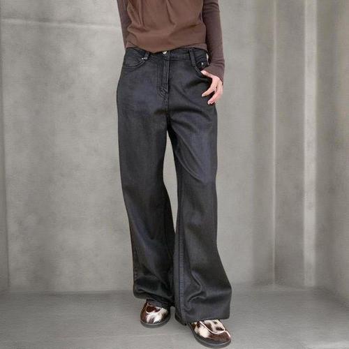 [다잇템]여성 롱 검정 면혼합 넓은 신축성 청바지