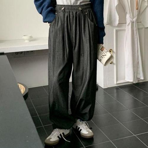 [신상오픈런]|KHP68B9|드솔라 여성 밴딩 데님팬츠 검정 스트링 와이드진_18173480_597559