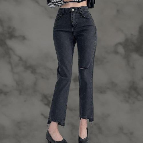 [다잇템][다잇템] 여성 나팔 슬림 세미 검정데님 컷아웃 청바지_22696381_588872