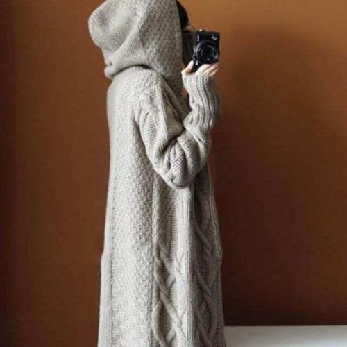 ROYALBELLE 여성 후드 디자인 맥시기장 루즈핏 긴팔 따뜻한 롱 니트 가디건 K090329