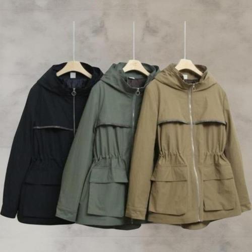 [다잇템][다잇템] 여성 조절 바람막이 사파리 후디 허리 면혼합 점퍼_23661171_588872