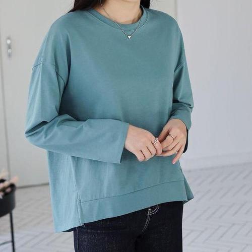 [셀러허브_여성트랜드패션]여자 민무늬 코튼 실켓 힙커버 봄긴팔 티셔츠