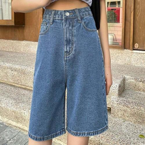하이웨이스트 청반바지 여성 여름 와이드 a라인 데님 4부 5부 반바지 팬츠