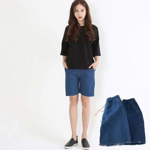 [셀럽하우스]4부 HXHV7366 허리밴딩 여성 데님 청 반바지 진청
