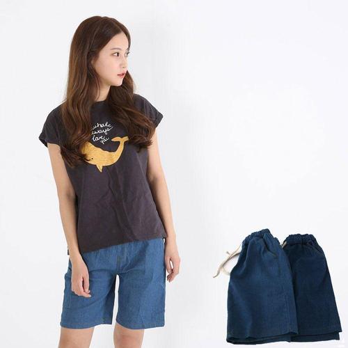 [셀럽하우스]4부 GEZF2626 허리밴딩 여성 청 데님 반바지 진청