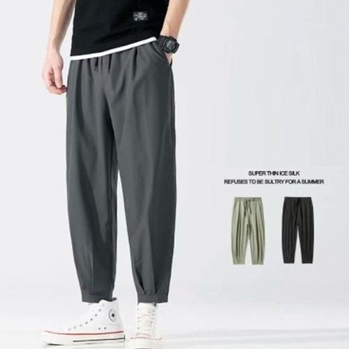 [셀러허브_여성트랜드패션]허리밴딩 8부바지 남성긴바지 밴딩팬츠 여름 쿨링 크롭 통바지 와이드핏