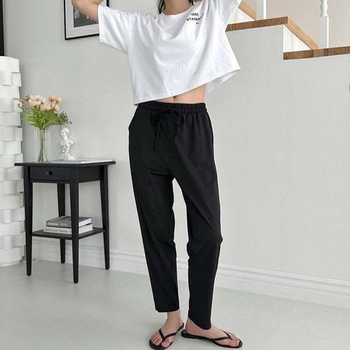 [셀럽하우스]여성 MOYJ1761 여름바지 쿨 9부바지 냉감 쿨팬츠 허리밴딩 블랙