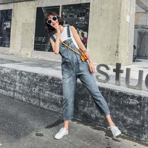 [셀럽하우스]여자 CDML2955 포켓 9부 데님 청 멜빵 바지 오버롤 어깨끈 조절