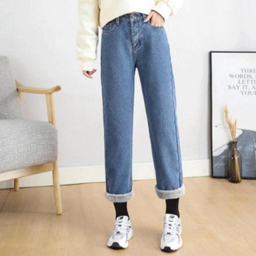 여자 겨울 융 기모 청바지 일자 뒷밴딩 9부 데님 팬츠 WFKOOON