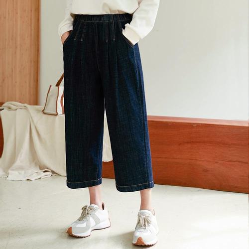 앤드스타일 여성용 옆주름 스판 데님 9부 풀밴딩 와이드 팬츠 264945