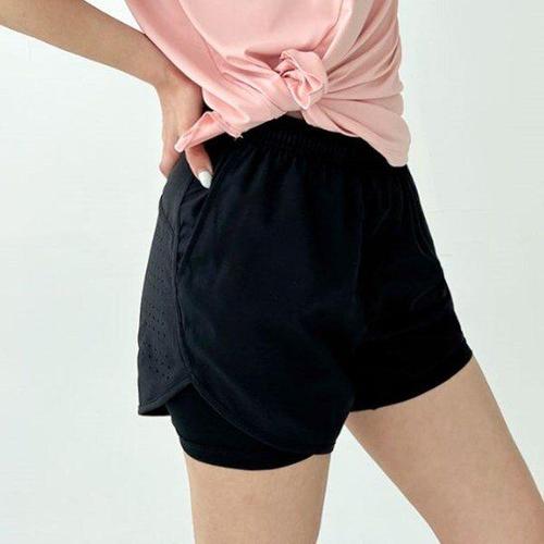 [다잇템]여성 쇼츠 3부 넓은 검정 바이커 운동 레깅스