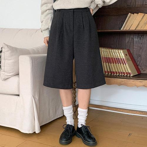 네모엔룩 하프버뮤다 여성 겨울 도톰 울혼방 허리 앞핀턱 뒷밴딩 사이드포켓 모직 하프 팬츠