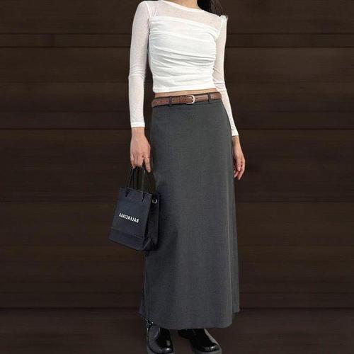 [신상오픈런]여성 H라인 백슬릿 롱스커트 가을 모던 맥시 스커트