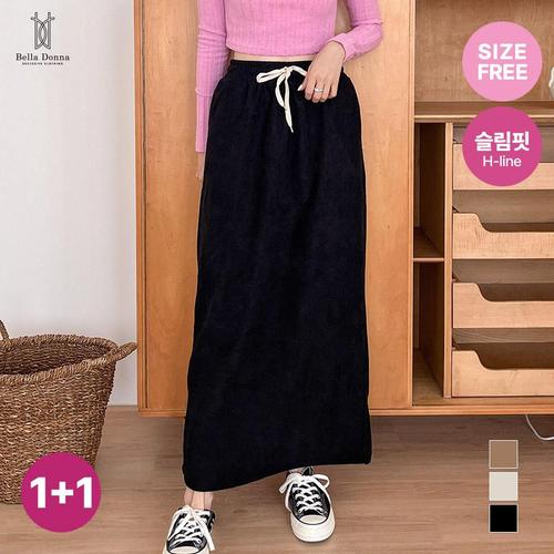 1+1 벨라도나 여성 가을 골지 밴딩 H라인 롱스커트 코듀로이치마 BLN25_SK39s2