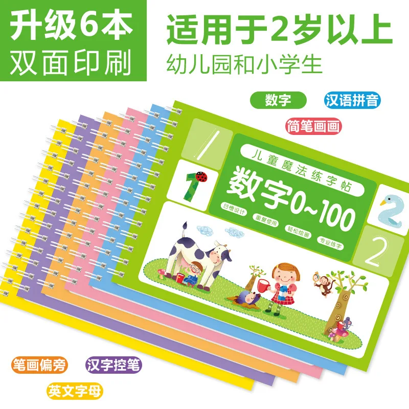3D 재사용 가능한 어린이용 서예 숫자 필기 연습장 수학 학습 쓰기 연습 책