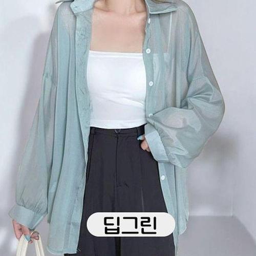 [셀러허브_여성트랜드패션]ONM 베리노블 여성 린넨 긴팔 딥그린색 셔츠 시스루