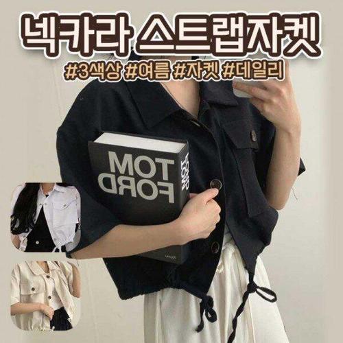 [모노무드]LMO 우먼 리넨패브릭넥카라 스트랩 크롭자켓 3컬러 머스트해브