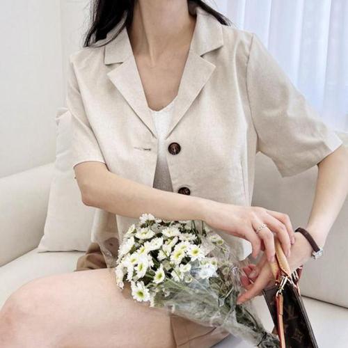 [라일리여성의류] Rly 여름 린넨 반팔자켓 가벼운 데일리 아우터 코디템 43285203)