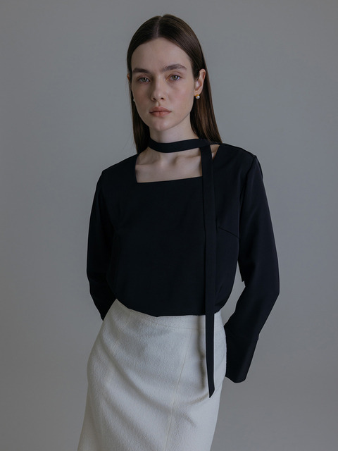 [토와브] 엘르 타이 블라우스 (애쉬블루,블랙)