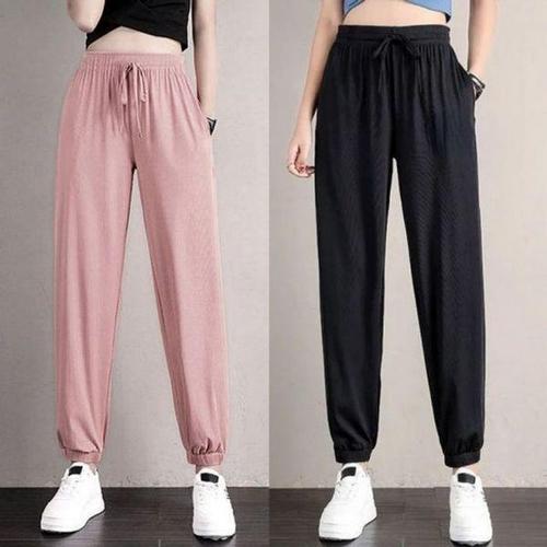 [에이치플러스몰]여름 빅사이즈 남여공용 허리밴딩 긴 쿨 바지 찰랑 남