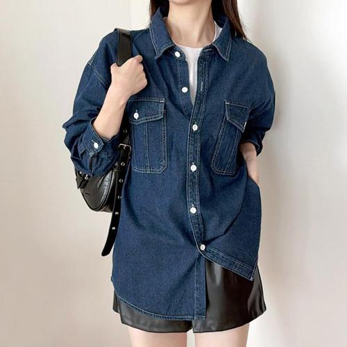 [sado]여성 청남방 오버핏 포켓 데님 셔츠 긴소매 WSF5002