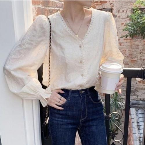 [엄지척]큐티 남방 흰색셔츠 데일리 소매 블라우스 퍼프 데님_19642715_667501