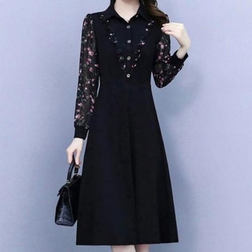 [엄지척]여성 가을 간절기 꽃레이스 쉬폰 배색 정장 원피스_19913259_667501