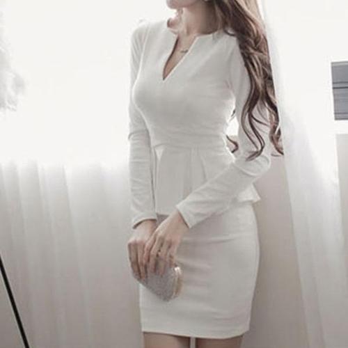 [옷자락] 여자 가을 겨울 정장 하객룩 브이넥 슬림 미니원피스