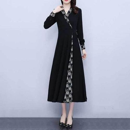 [엄지척]여성 가을 간절기 프린트 무늬 배색 긴팔 정장 원피스_19872861_667501