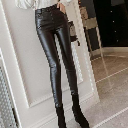 [셀럽하우스]여성 MNGX1685 여자 투버튼 스키니 기모 가죽바지 인조가죽 레