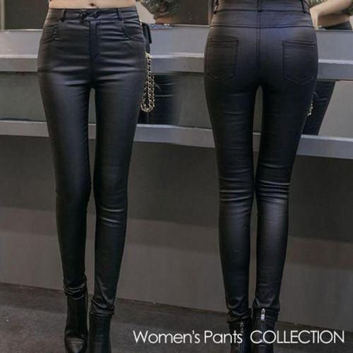 [엄지척]여성 시크한 올블랙 쫀쫀한 스판 가죽바지 레더팬츠_20178722_667501