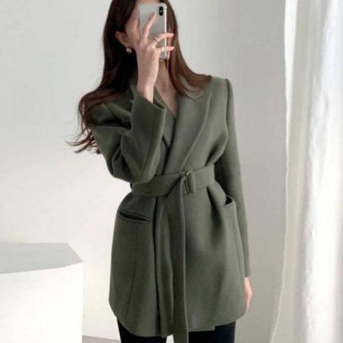 [셀러허브_여성트랜드패션]HL] 미디라인 레인코트 허리벨트 코트 하프코트 모직