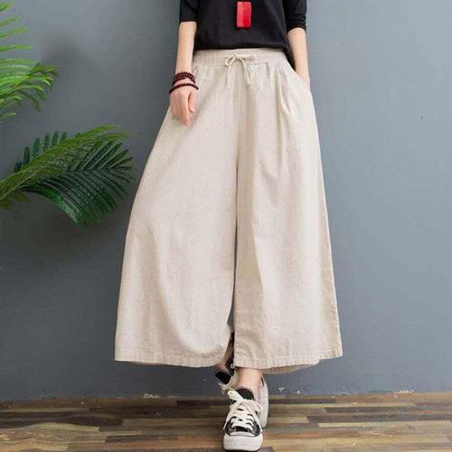 SAHINER 여성 린넨 와이드 팬츠 여름용 루즈핏 캐주얼룩