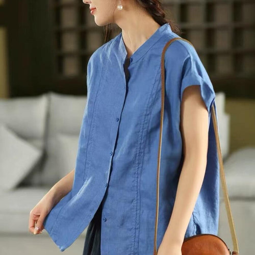 [옷자락]여성 클래식 톤다운 컬러 면 린넨 반팔 셔츠
