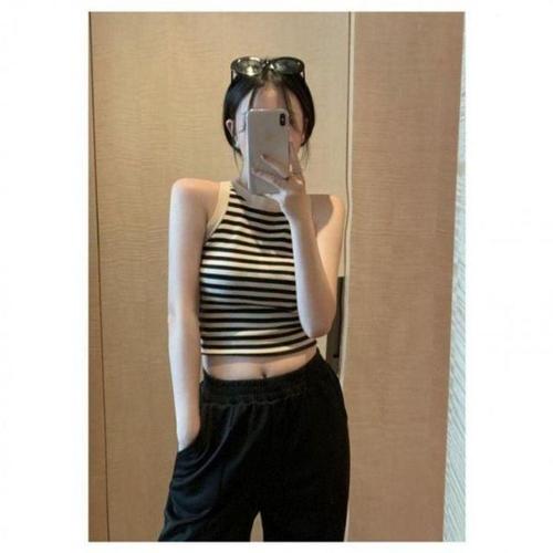 스트라이프 나시 크롭탑 민소매티 민소매나시 홀 WFLQA2F