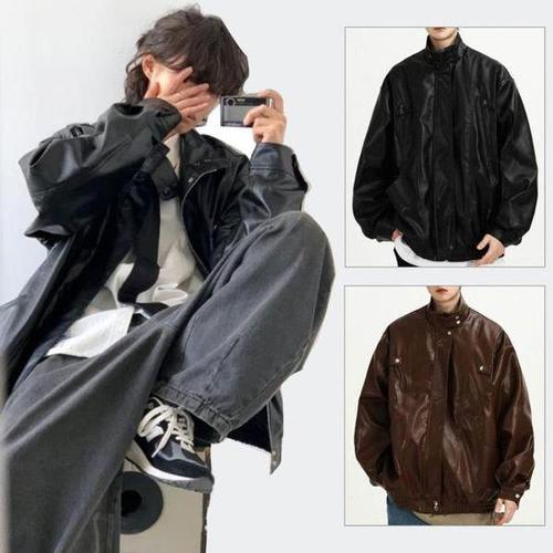 [셀러허브_여성트랜드패션]남자 인조가죽 박시핏 바이크 그런지 자켓