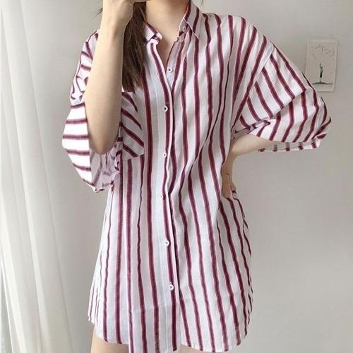 [엄지척]스트라이프 루즈핏 반팔셔츠 여성 여름 베이직_19650908_667501